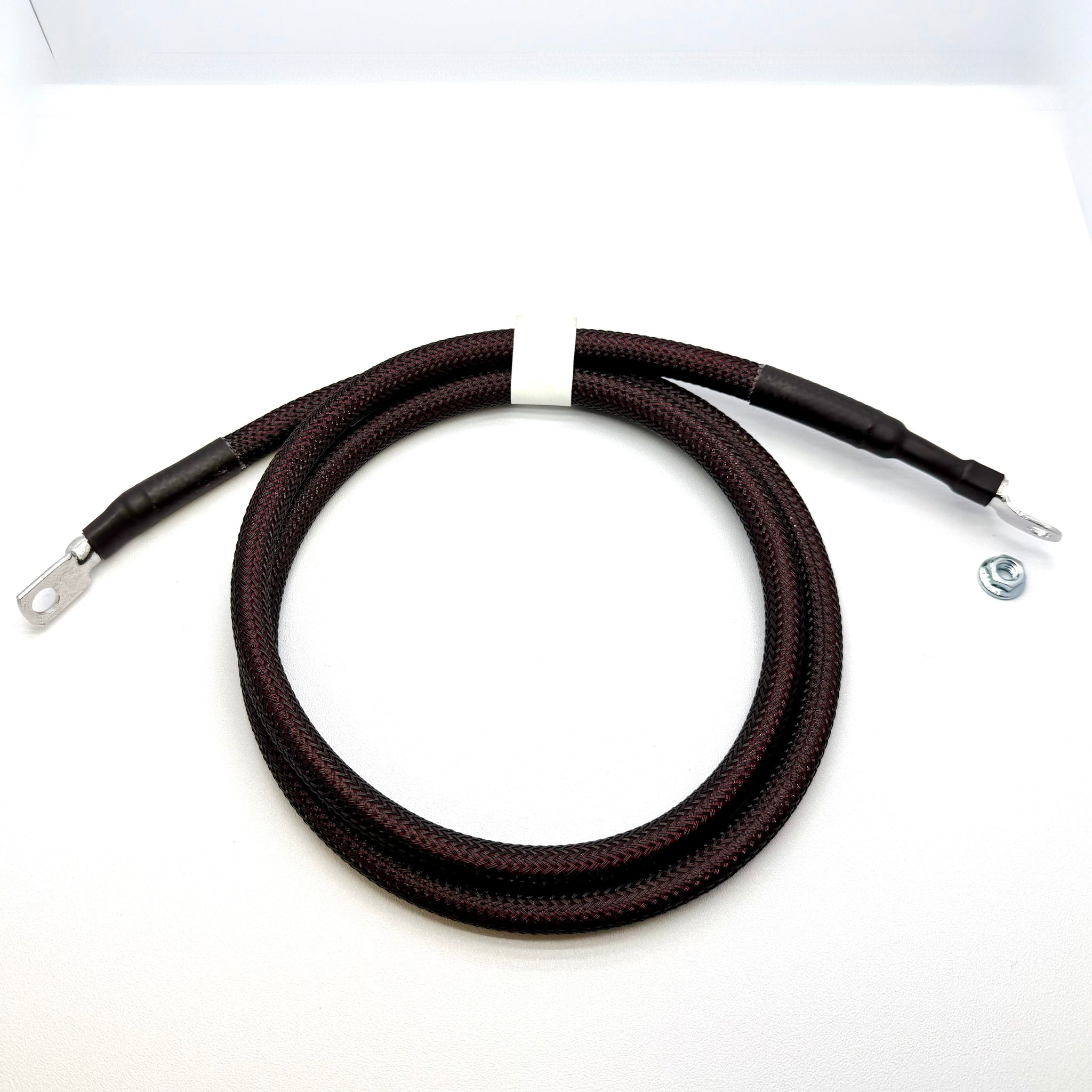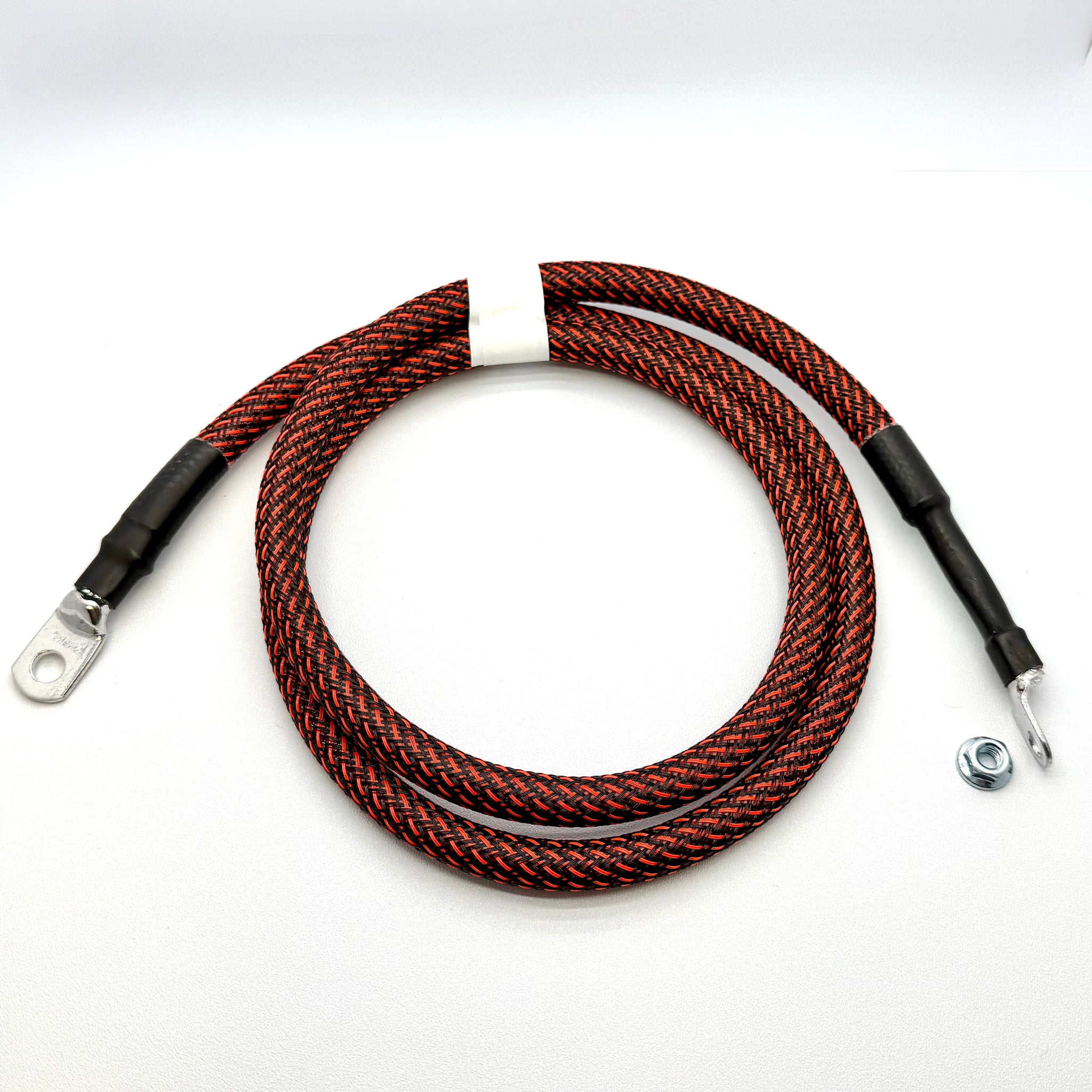 2AWG: Larger than stock pure copper 2AWG cable with all terminals dip soldered for added connection reliability and corrosion resistance. Cable is then covered in red/black braided sleeving.