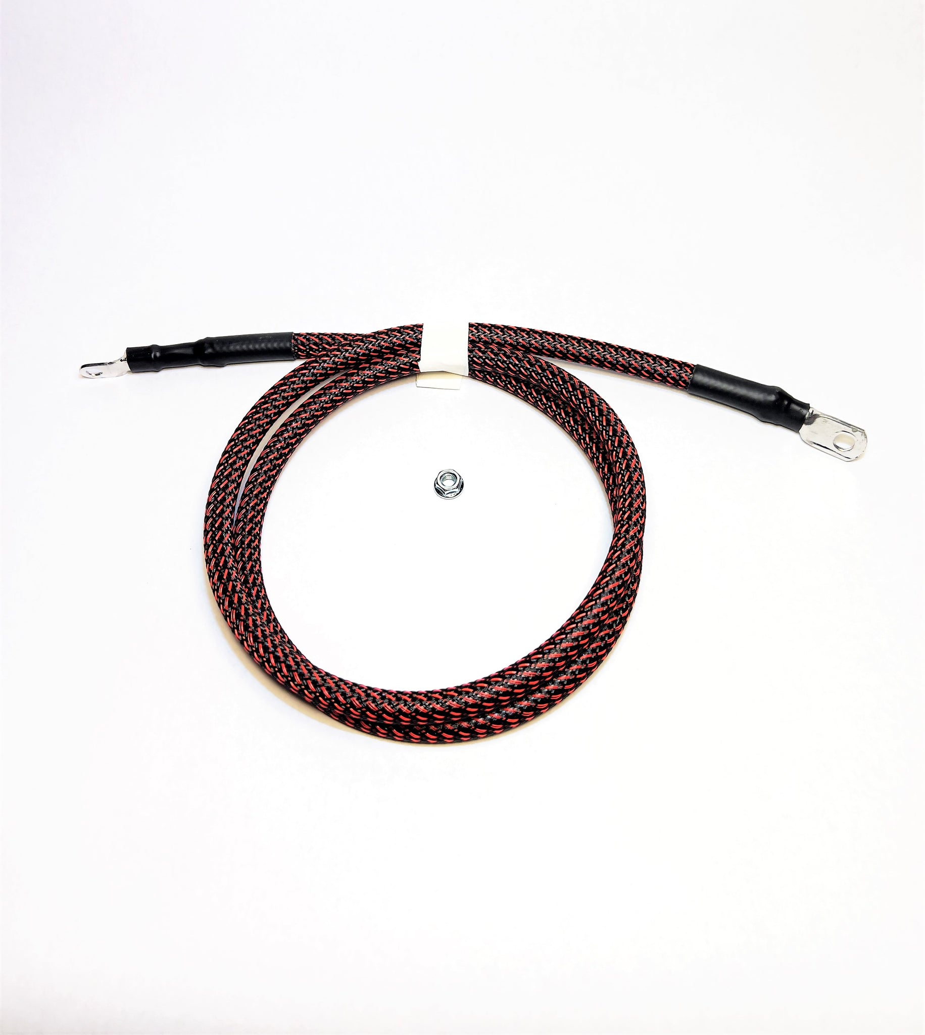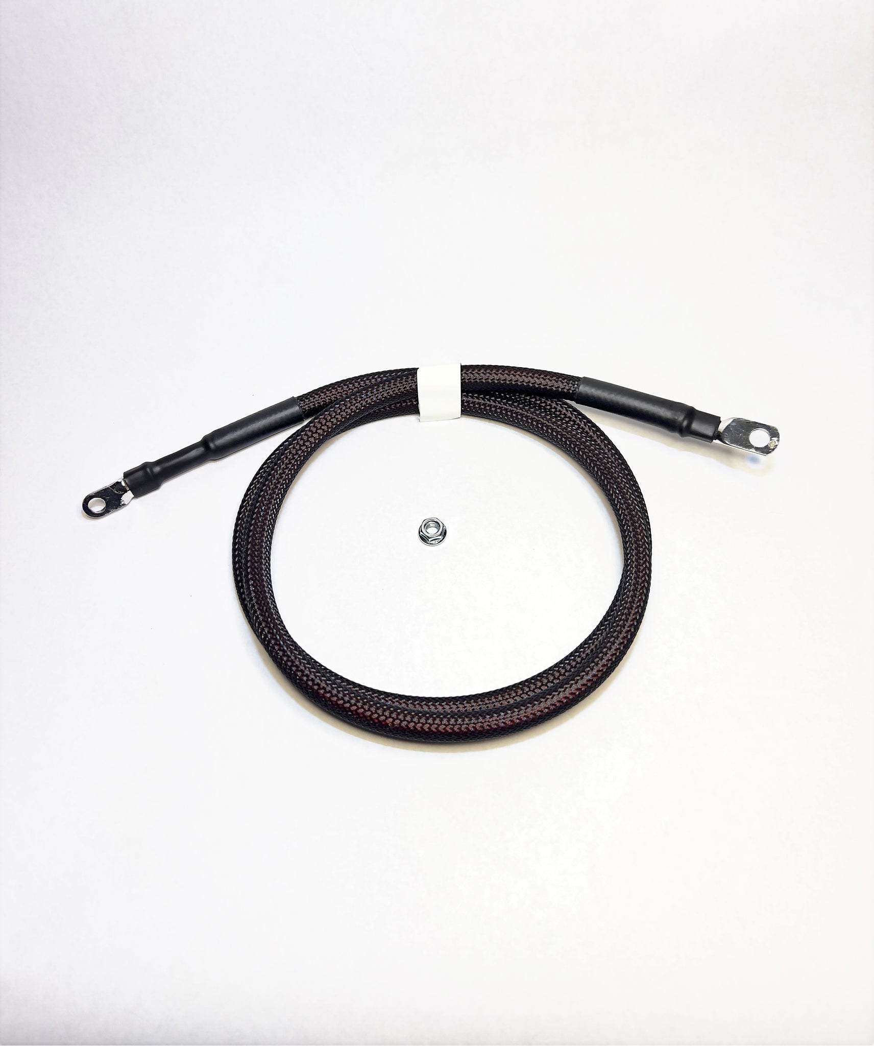 Replacement alternator to fuse box on top of battery cable. Common issue on MKIVs which can lead to melted fuse boxes and charging/running problems. These cables are made using high strand count copper cables so they are extremely flexible then covered in nylon braiding for added robustness. Terminals are F crimped, dip soldered, then glue lined heat shrunk.